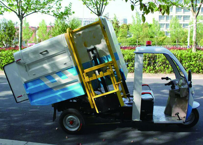 1、大容量垃圾箱,能夠有效提高作業效率;采用雙油缸翻桶機構,垃圾桶自卸作業。